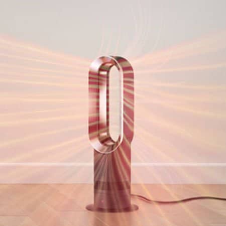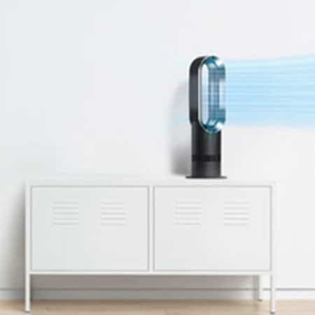 A fast way to heat the room evenly in winter and smooth cool air in summer. The Dyson Hot + Cool™ fan heater uses Air Multiplier™ technology for long range heat projection to heat the room quickly. It also uses high airflow and velocity for effective personal cooling. There are no fast-spinning blades or visible heating elements, so it’s easy to clean. There’s also an automatic cut out that switches the heating plates off if it’s tipped over.